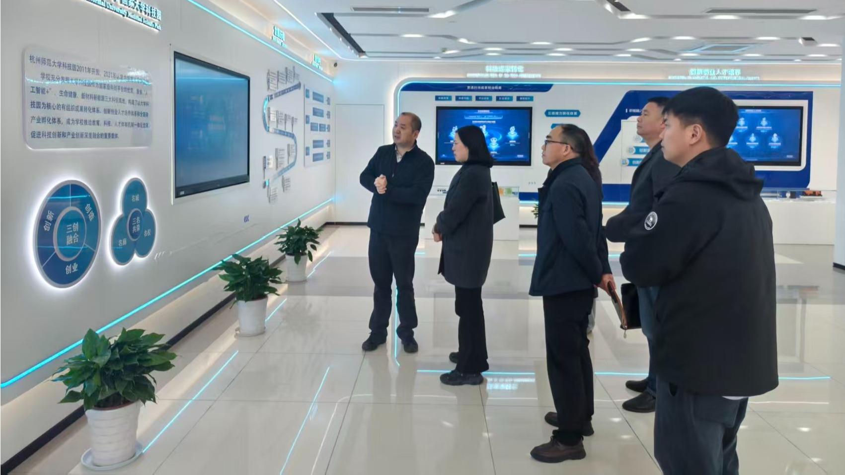 调研期间,在杭师大科技园公司总经理钱波陪同下,团队实地走访园区,详细了解空间布局、企业孵化成效、服务阵地建设等情况,沉浸式感受园区浓厚的双创氛围与完善的创新生态。