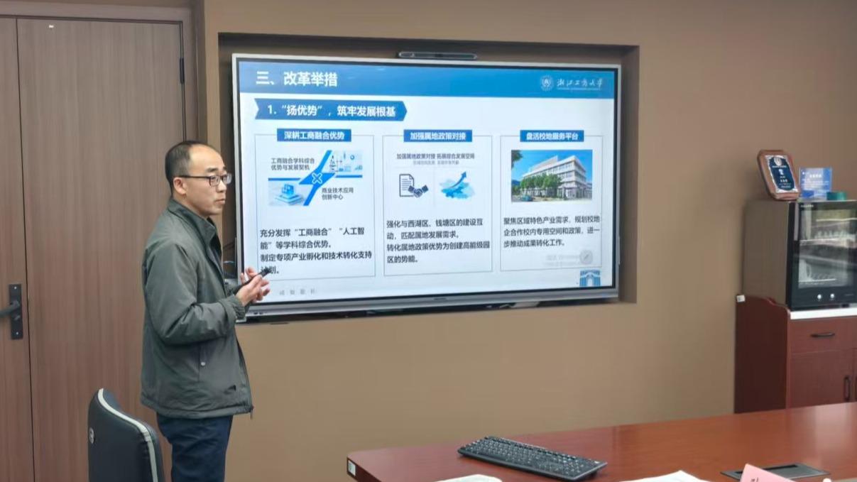 会上,科技园办赵妉主任介绍了浙商大科技园建设运行基本情况,同步介绍创业园公司运营管理现状与阶段性成效,清晰勾勒园区整体布局与运营脉络;科技园办陈跃文副主任围绕《浙商大省级大学科技园建设运行推进方案》作专项汇报,系统阐述园区建设总体思路与实施框架;