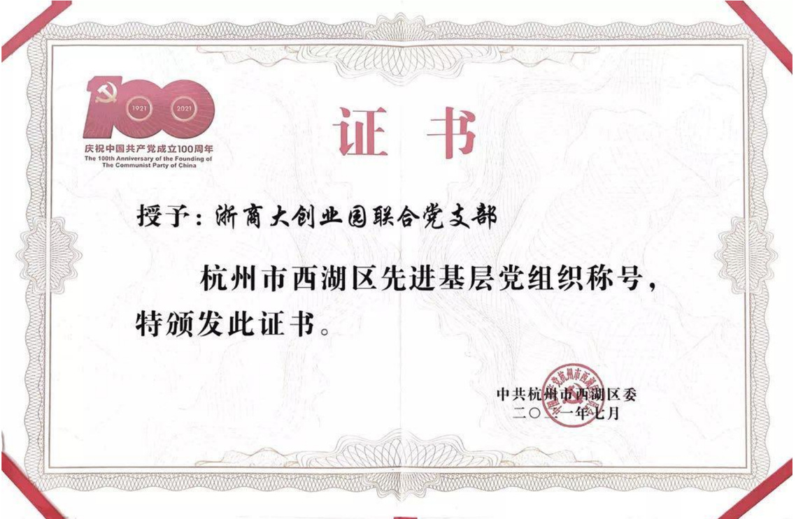 浙商大创业园联合党支部荣获“杭州市西湖区先进基层党组织”称号